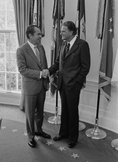 Graham stood by Nixon’s side as Nixon perfected the Southern Strategy, which garnered the support of southern white Christian voters, playing up on their racism and fear of civil rights.